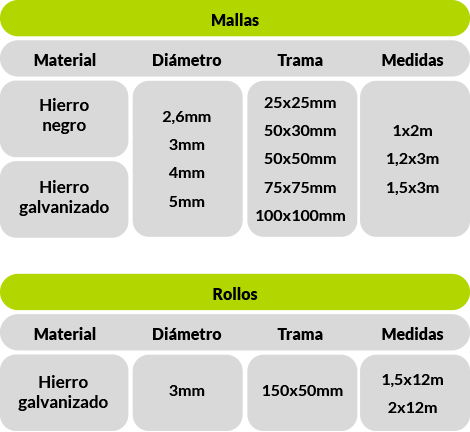 Las mallas son fabricadas en medidas estándar, pero también podemos atender a diseños exactos según cada proyecto.